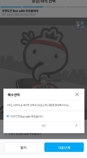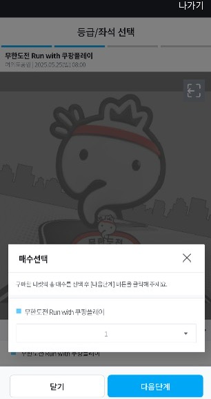 접속이 되면 티켓 수를 선택하는 창이 나옵니다