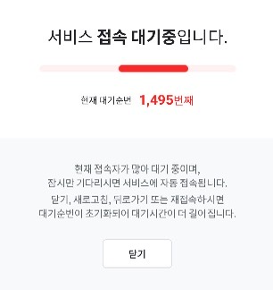 8시 땡! 하고 접속하니제 앞에 약 1500명의 사람들이있었습니다
